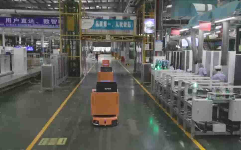 为车载冰箱物流配送打造的智能解决方案,,,,包含产中物流通过潜伏举升AMR搬运至线边,,产后成品物流智能仓储,,流程包含产中物流智能齐套入库,,,,线边安灯叫料AMR智能配送至线边,,,成品入库、、、出库,,,通过无人堆高车机器人,,,,智能仓储管理替代人工作业管理,,,实现更高存储、、、更高效率、、、更具柔性化的解决方案。。。